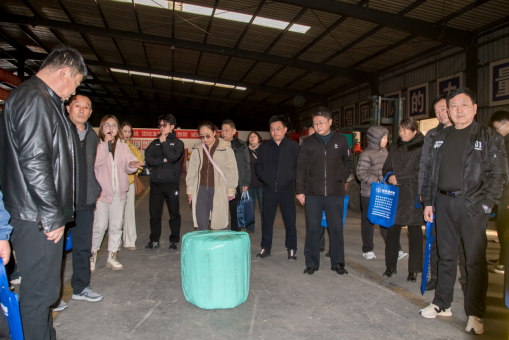 在生产车间,种粮大户们依次参观了畜牧养殖TMR日粮制备机、撒料车及小麦秸秆捡拾方捆打捆机等核心装备。其中,方捆打捆机的高效捡拾功能,均贴合规模化种植与养殖的实际需求。“这款打捆包膜一体机太实用了,我们村每年有大量玉米秸秆浪费,用它不仅能变废为宝,还能降低养殖成本。”来自陵城镇的种粮大户王老板一边拍摄设备操作视频,一边向技术人员咨询适配方案。